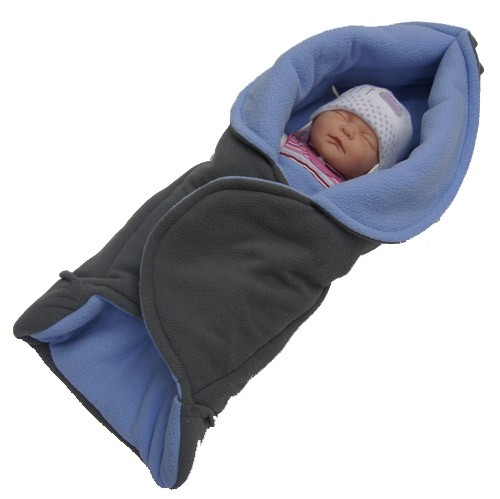 - posiada otwory na pasy od fotelika ub wózka by móc przypiąć dziecko zawinięte w foteliku lub w wózku, huśtawce lub w leżaczku